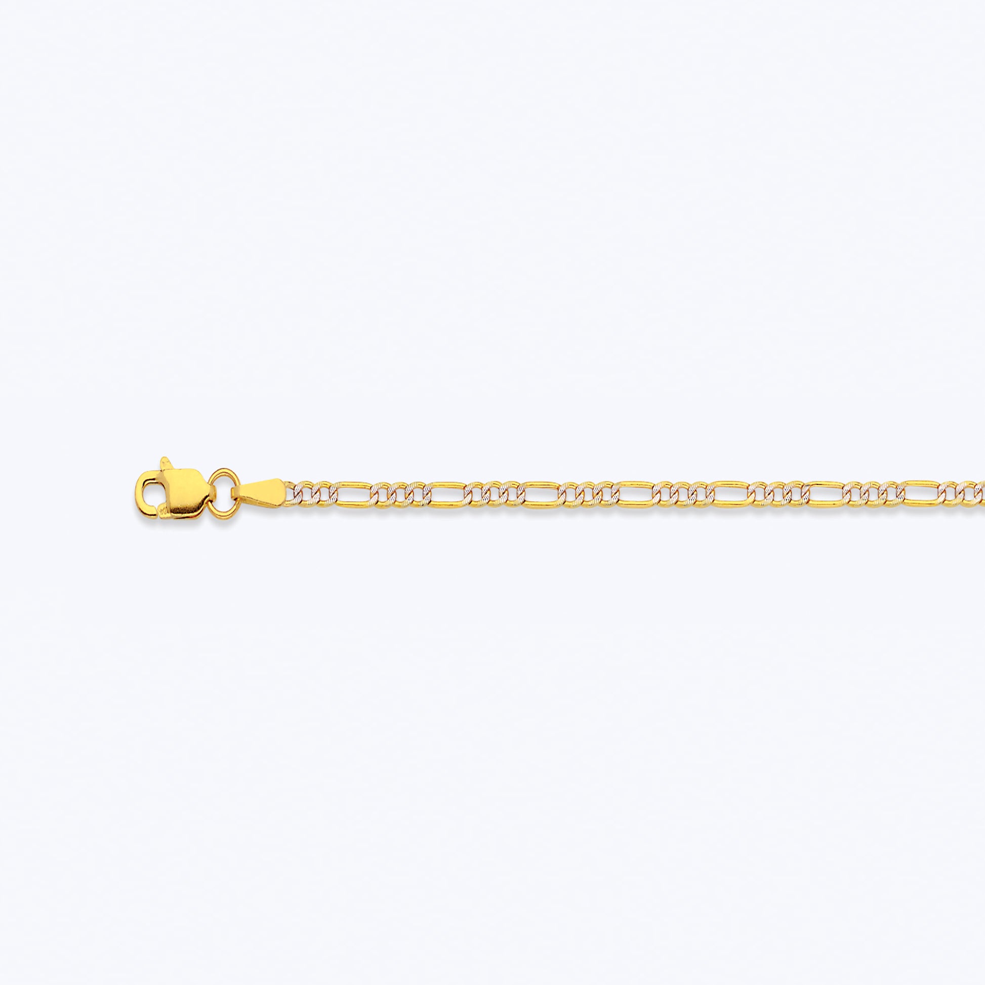 10K 2MM YELLOW GOLD HOLLOW PAVE FIGARO 8" CHAIN BRACELET (AVAILABLE IN LENGTHS 7" - 30")