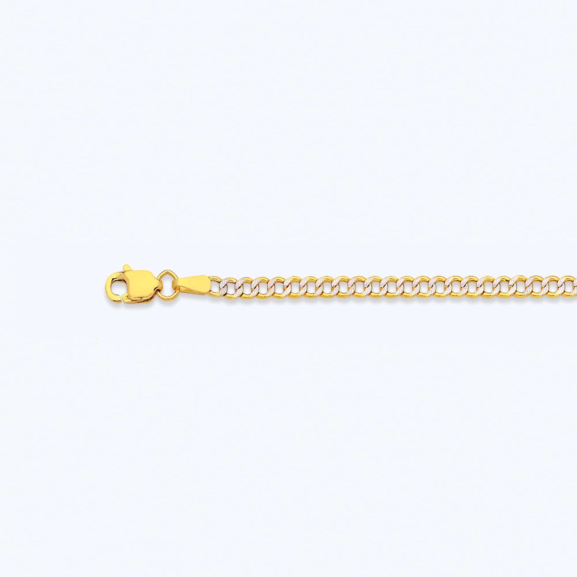 14K 2.5MM YELLOW GOLD HOLLOW PAVE CURB 8.5" CHAIN BRACELET (AVAILABLE IN LENGTHS 7" - 30")