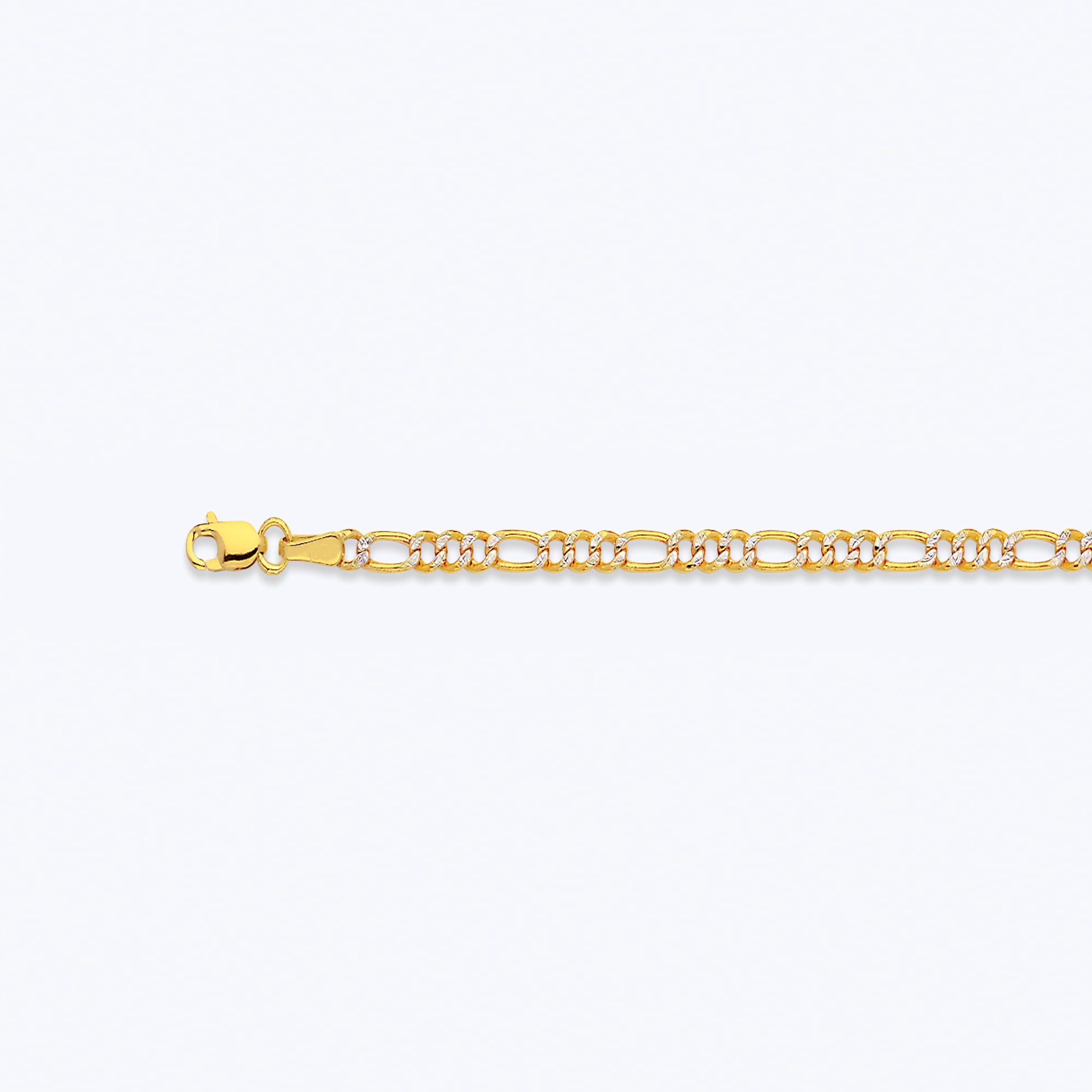 14K 2.5MM YELLOW GOLD HOLLOW PAVE FIGARO 18" CHAIN NECKLACE (AVAILABLE IN LENGTHS 7" - 30")