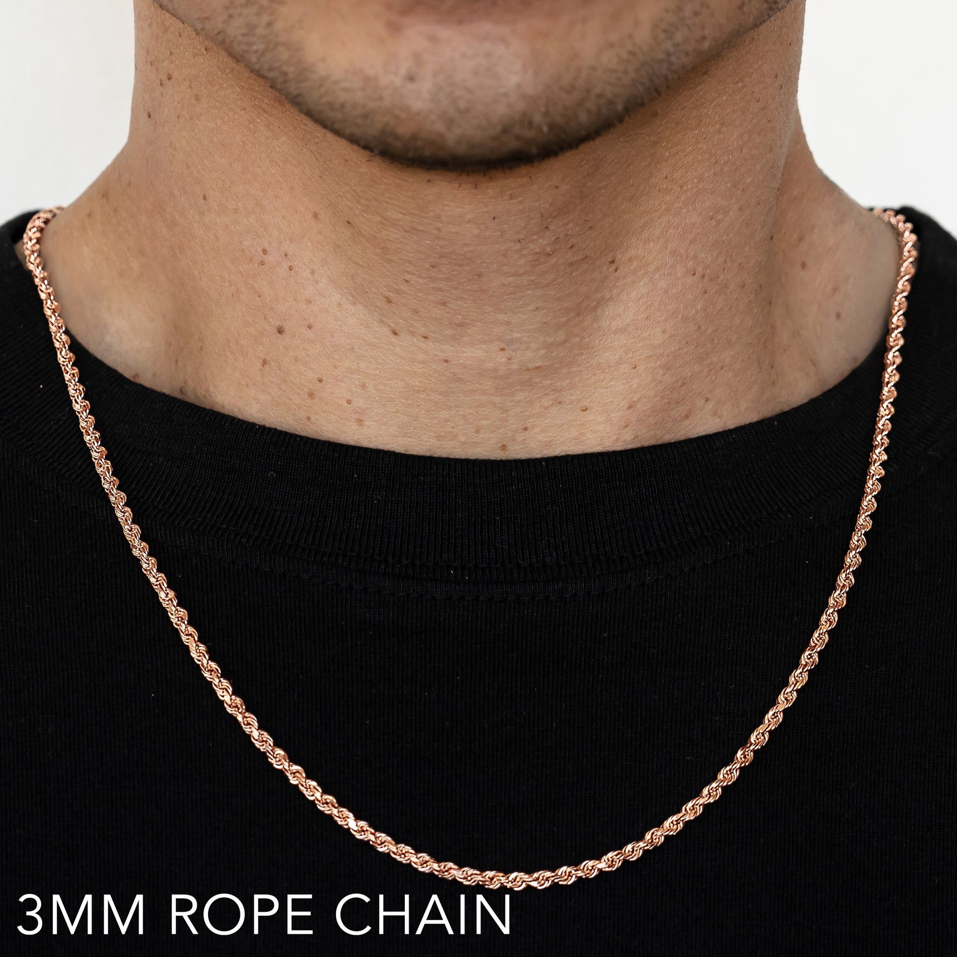 14K 3MM ROSE GOLD SOLID DC ROPE 24" CHAIN NECKLACE (AVAILABLE IN LENGTHS 7" - 30")