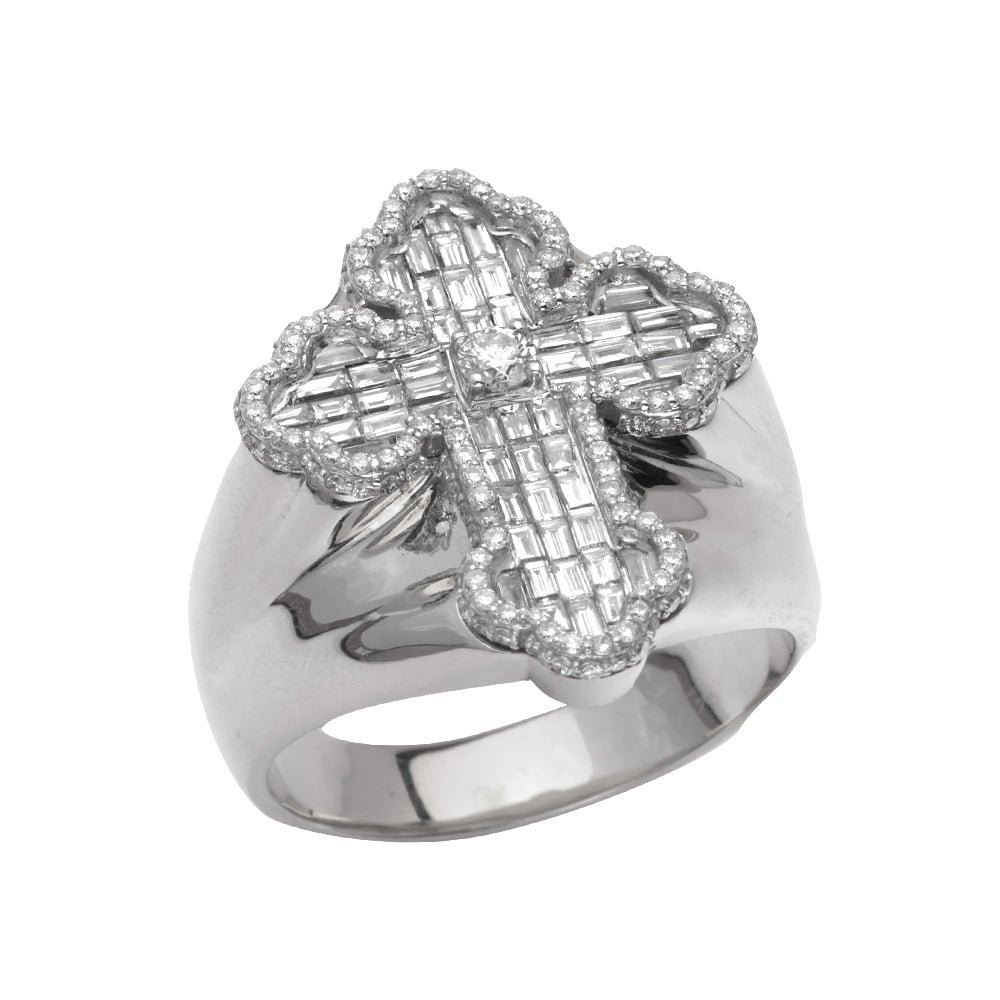14KW+W 1.70CTW BAGUETTE DIAMOND FLUER DE LIS CROSS
